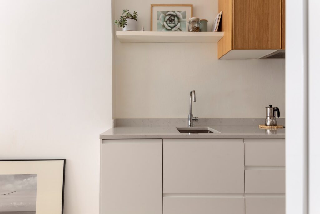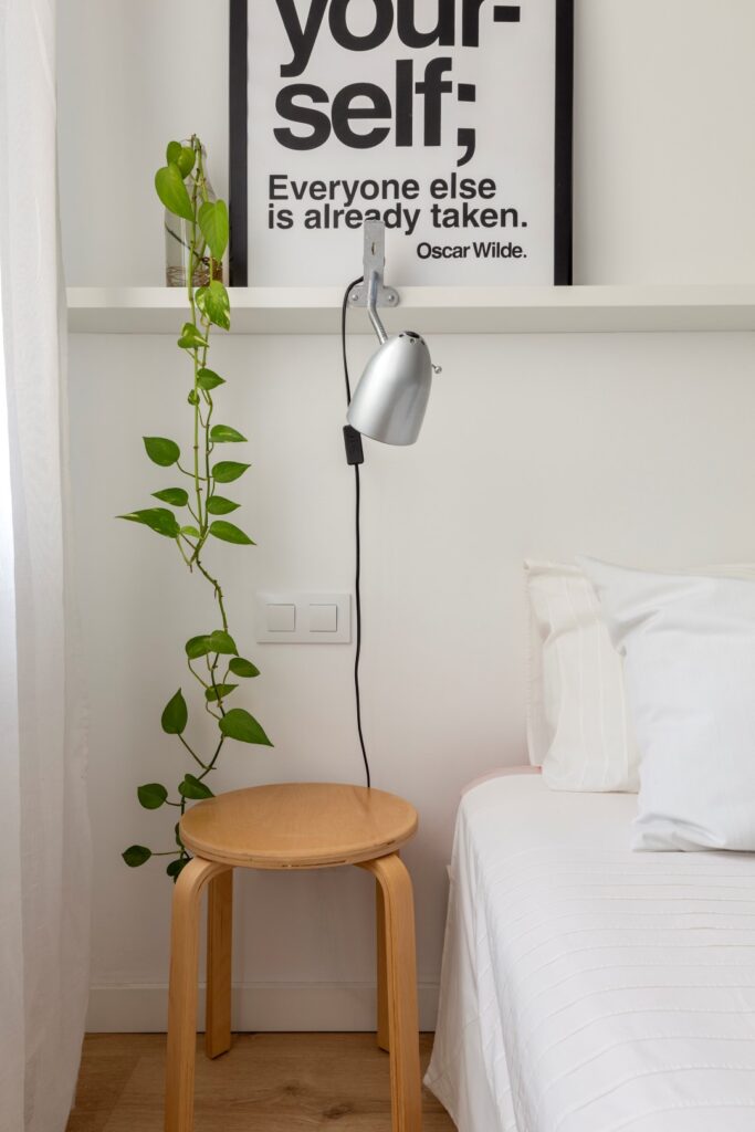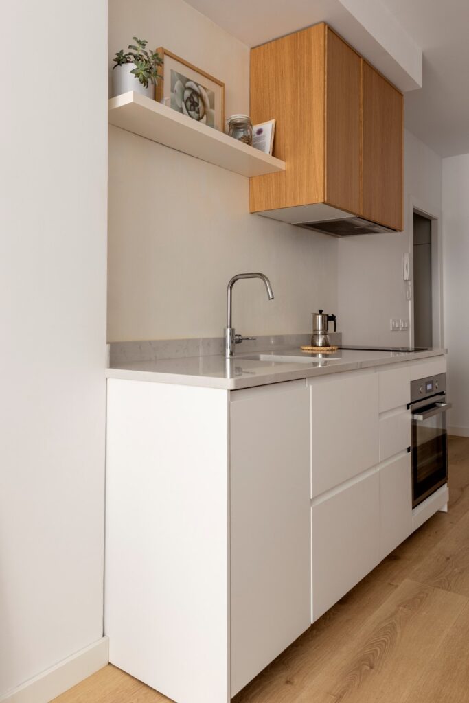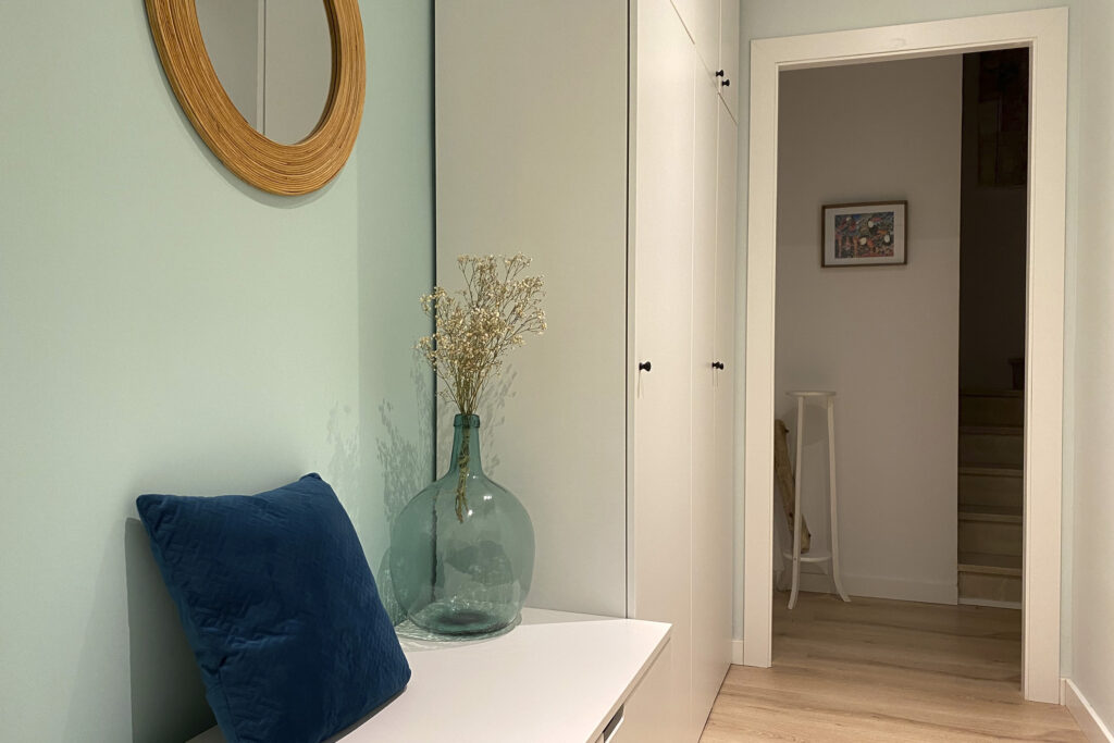 Un altre gran repte va ser optimitzar l’espai d’emmagatzematge en un habitatge de dimensions tan reduïdes. Per això, es van dissenyar mobles a mida que aprofiten al màxim els racons disponibles permetent mantenir l’habitatge ordenat i sense renunciar a la sensació d’amplitud.